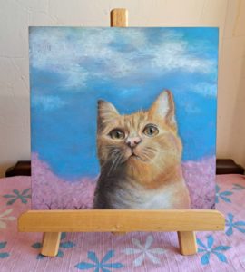 基本的にはボードに描きますが 紙に描くこともできます。 ボードはミニイーゼルに立てれば そのまま飾ることができます。 紙はお客様でお気に入りの額縁に 飾り付けてください。
